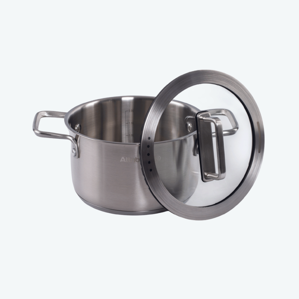 Коллекция ARGENTO создана для комфортного и эффективного приготовления блюд каждый день. Пятислойное дно посуды обеспечивает равномерный нагрев и удержание тепла, снижая риск пригорания. Плоская стеклянная крышка с силиконовым ободом плотно прилегает к корпусу, предотвращает разбрызгивание и оснащена отверстиями для выхода пара и слива воды. Встроенная мерная шкала упрощает точное дозирование ингредиентов, помогая соблюдать рецепты. В линейке представлены ковш 1,8 л и кастрюли разных объёмов — удобные решения для приготовления соусов, супов, гарниров и других блюд. ARGENTO сочетает функциональность и современный лаконичный дизайн.