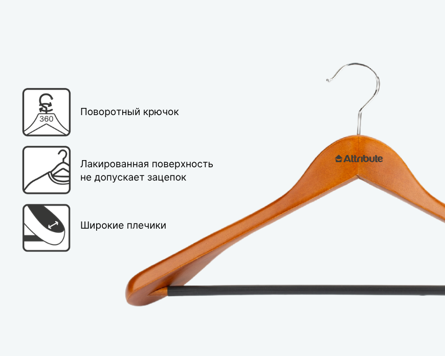 - Широкие плечики сохраняют форму верхней одежды, предотвращая её деформацию.