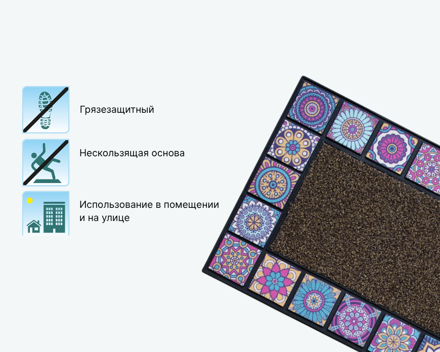 - — Размещайте коврик у дверей, чтобы он мог эффективно выполнять свою функцию — удерживать грязь и влагу.