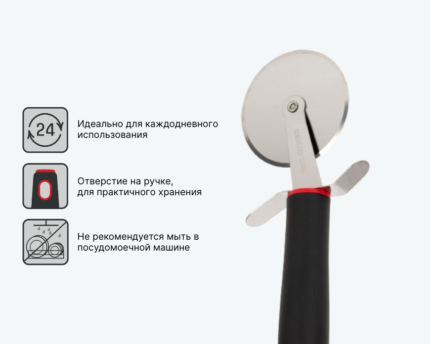 - — Применяйте для нарезки пиццы, теста и аналогичных продуктов.