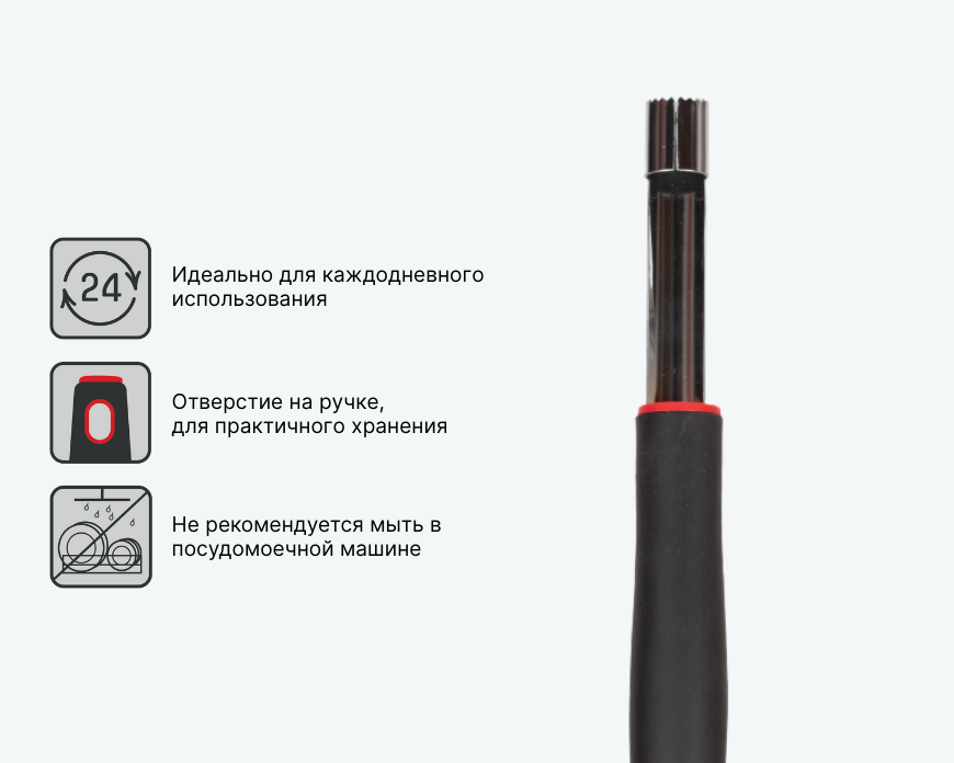 Нож для сердцевины яблок ESTILO специально разработан для удаления сердцевины яблок с легкостью и удобством. Рабочая часть из нержавеющей стали гарантирует надежность и долговечность при использовании. Удобное отверстие на ручке позволяет хранить средство в доступном месте. Рекомендуется ручная мойка для продления срока службы.