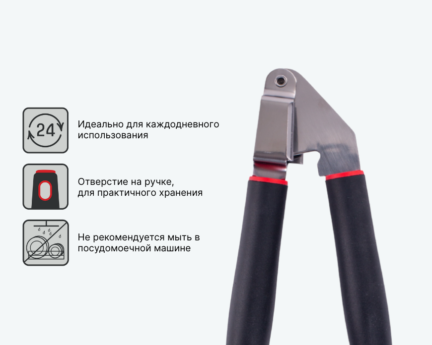 - — Перед первым использованием вымойте пресс для чеснока в горячей воде с мягким моющим средством и вытрите насухо.