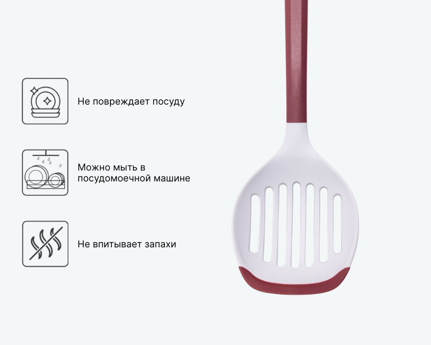 - Силиконовая вставка не повреждает поверхности, включая антипригарное покрытие.