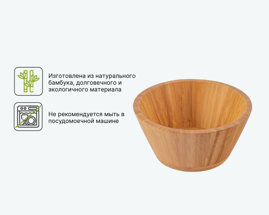 Компактная миска EDEM из натурального бамбука подойдёт для подачи закусок, орехов, фруктов или соусов. Лёгкая и прочная, она не впитывает запахи. Гладкая поверхность легко очищается, а натуральный материал безопасен для пищевых продуктов и не царапает посуду.