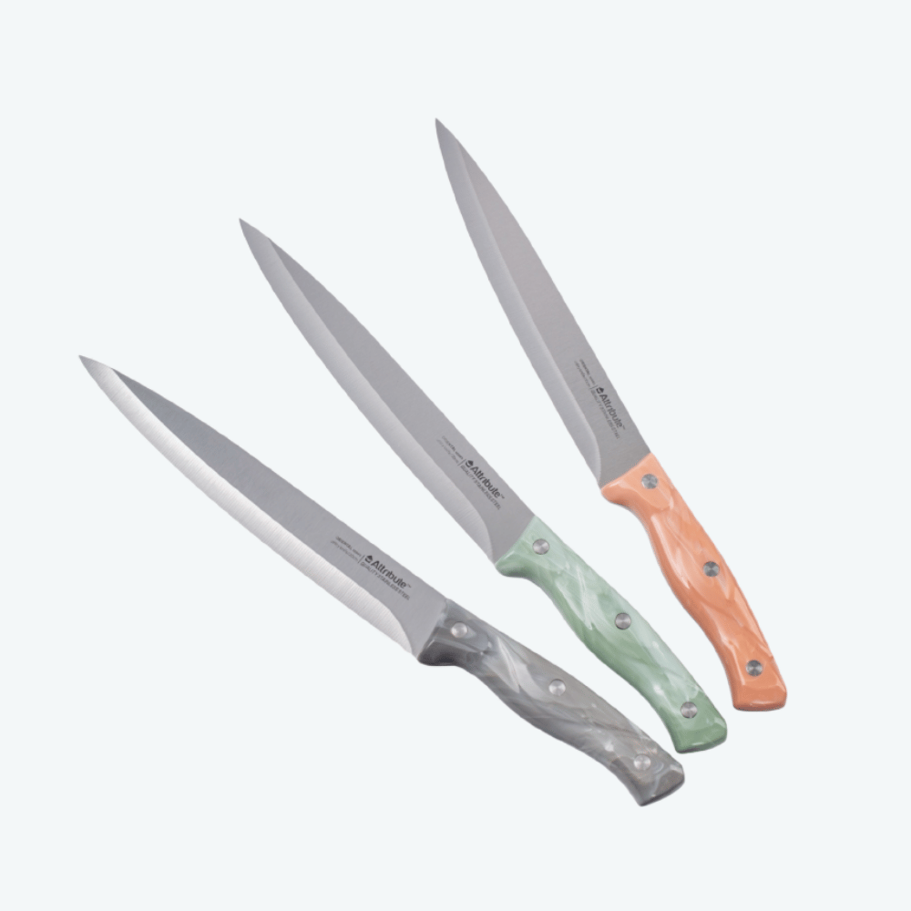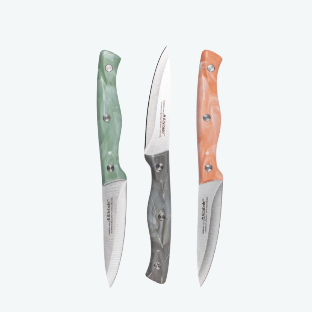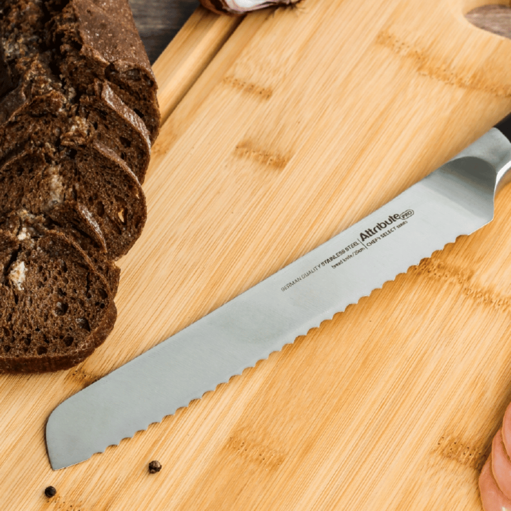 Идеальный инструмент для каждой кулинарной задачи. Поварские, универсальные, для хлеба, овощей – ножи Attribute из качественной острой стали сохраняют заточку надолго. Продуманный дизайн (эргономичная ручка, идеальный баланс, форма лезвия) обеспечивает максимальную функциональность и безопасность реза. Инновации в закалке стали гарантируют долговечность. Испытайте точность и удовольствие от нарезки с Attribute.