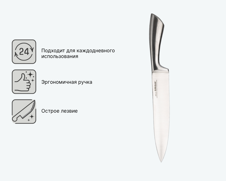 - Универсальность: подходит для нарезки, шинковки и разделки продуктов.