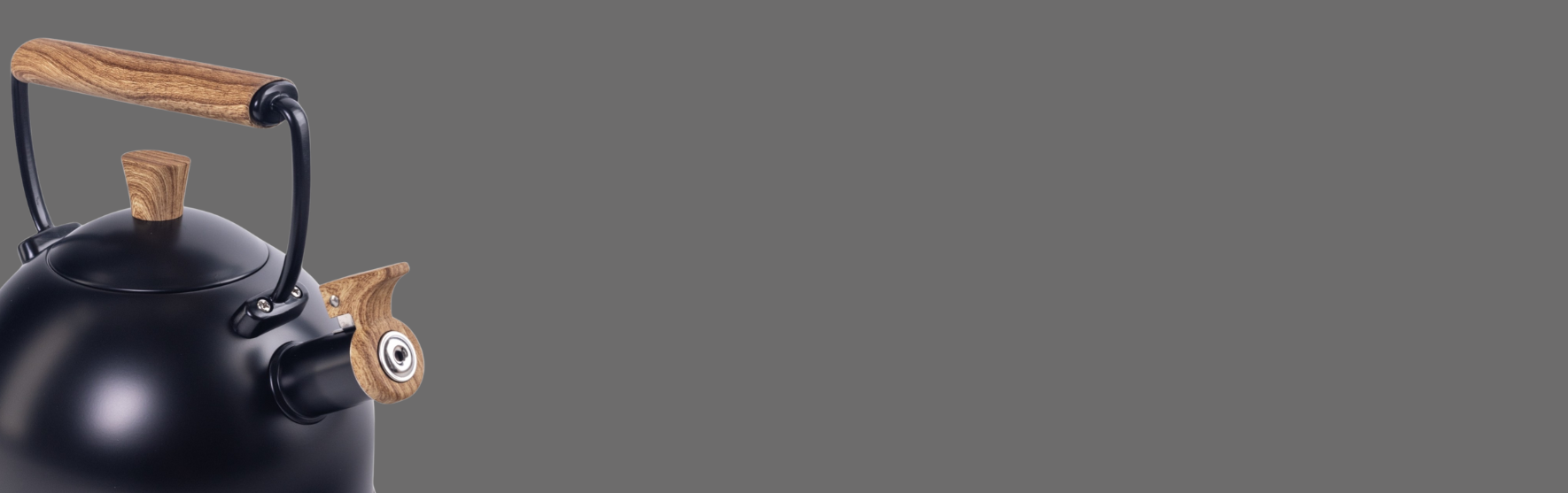 - Универсальный черный цвет с ручкой «под дерево» придает чайнику стильный вид, который подойдет к любому интерьеру кухни.