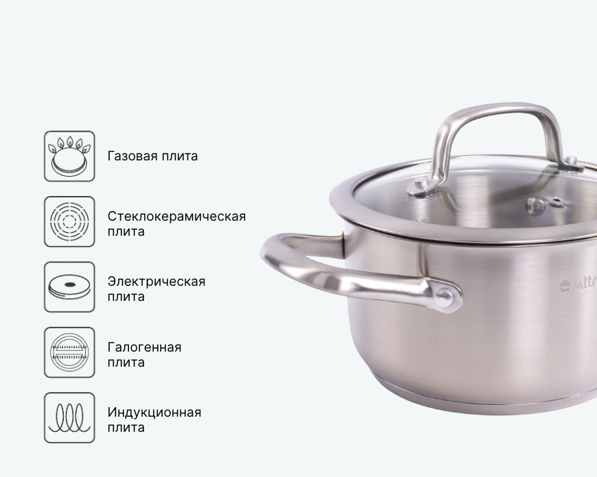 - — Подходит для любых типов плит, в том числе индукционных. Не использовать в микроволновой печи