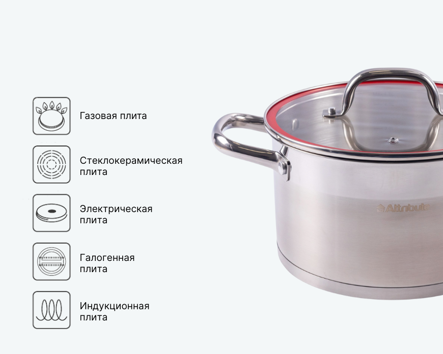 Кастрюля 4,8 л из коллекции SCARLET сочетает функциональность и долговечность. Пятислойное капсульное дно толщиной 3,5 мм обеспечивает быстрый и равномерный нагрев, предотвращая пригорание. Корпус из нержавеющей стали 18/10 прочен, устойчив к коррозии и легко очищается благодаря матовой поверхности. Жаропрочная стеклянная крышка с широким стальным ободом защищена от сколов и оснащена отверстием для выхода пара, а универсальное дно позволяет использовать кастрюлю на всех типах плит.