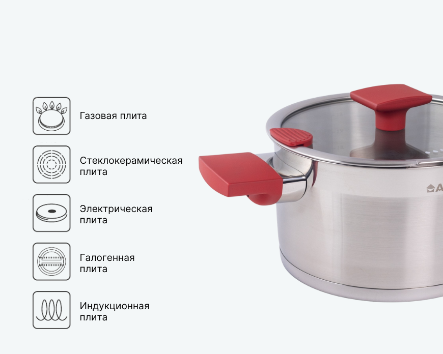- — Подходит для любых типов плит, в том числе индукционных. Не использовать в микроволновой печи и в духовке.