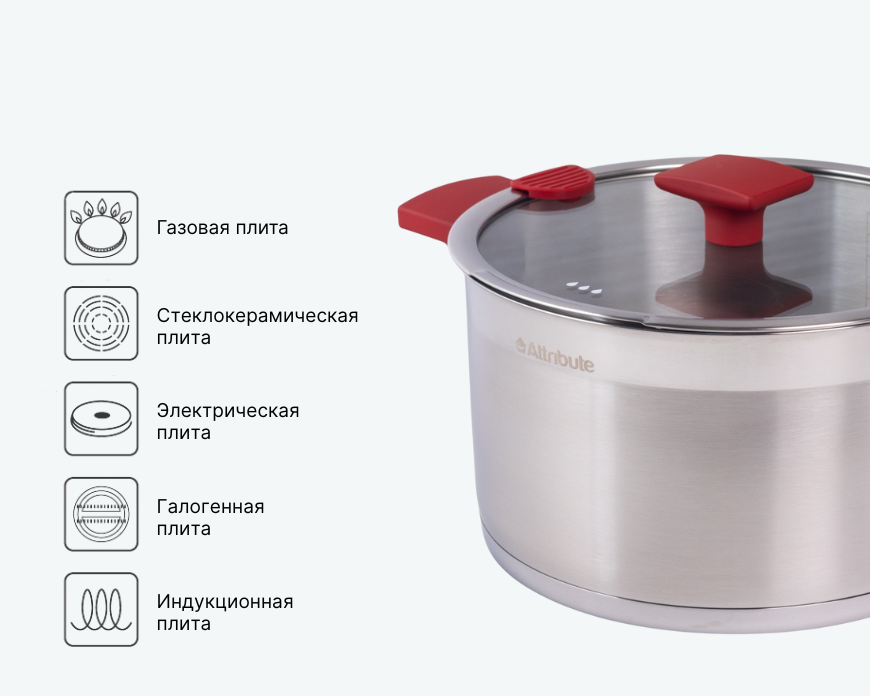 - — Подходит для любых типов плит, в том числе индукционных. Не использовать в микроволновой печи и в духовке.
