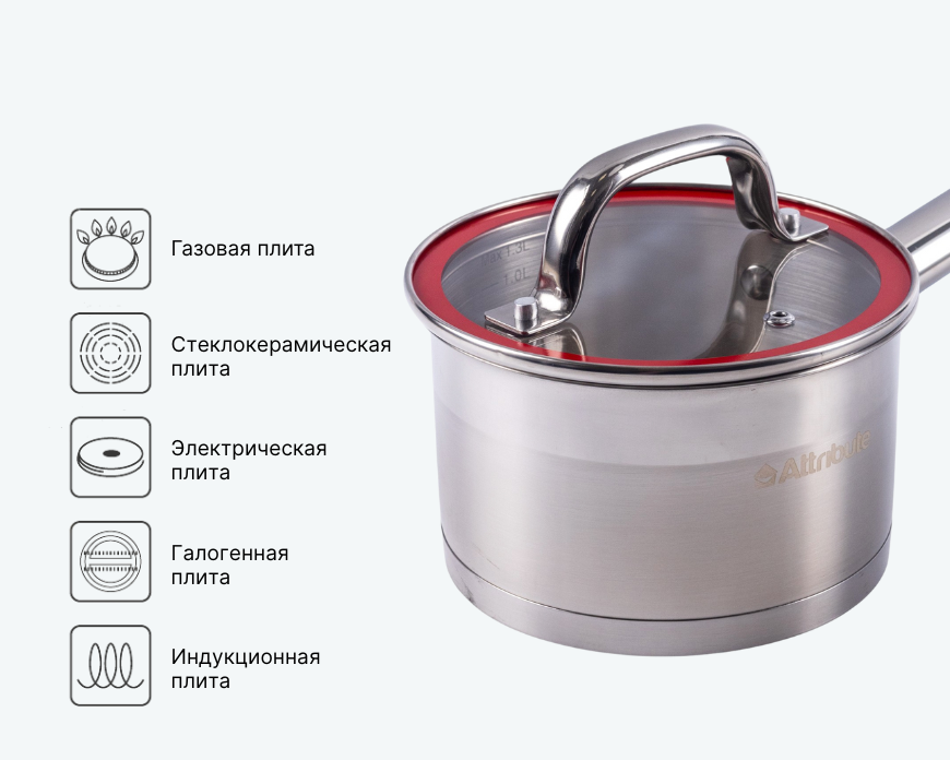 - — Подходит для любых типов плит, в том числе индукционных.