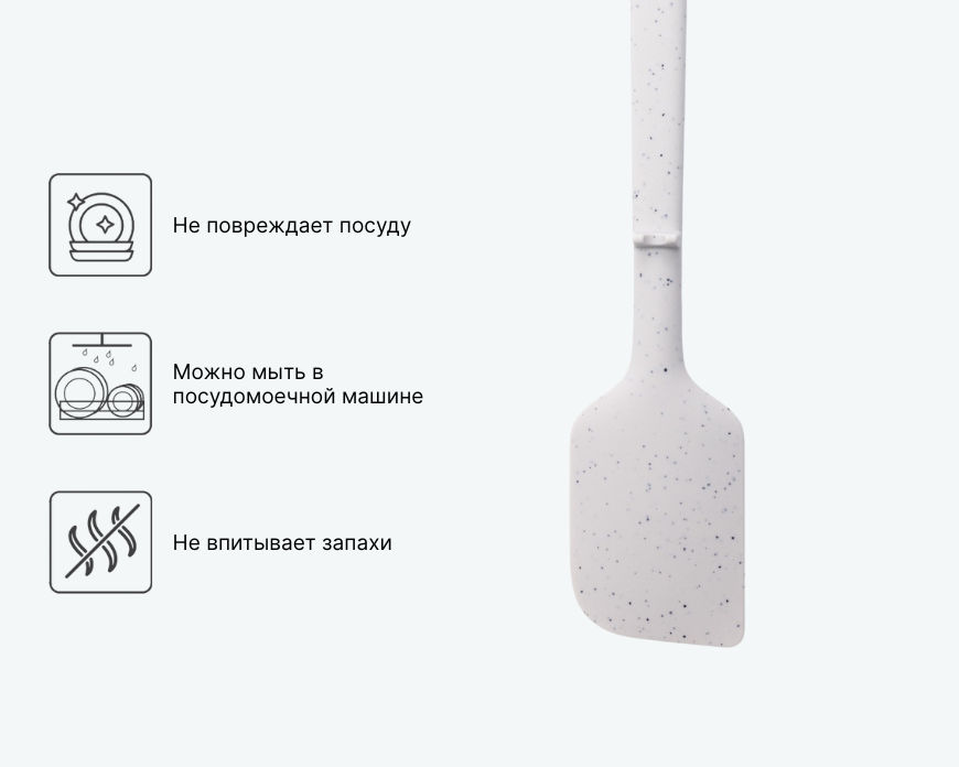 - — Перед первым использованием вымойте лопатку в горячей воде с мягким моющим средством и вытрите насухо.