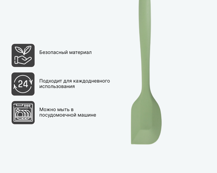 - — Перед первым использованием вымойте лопатку в горячей воде с мягким моющим средством и вытрите насухо.