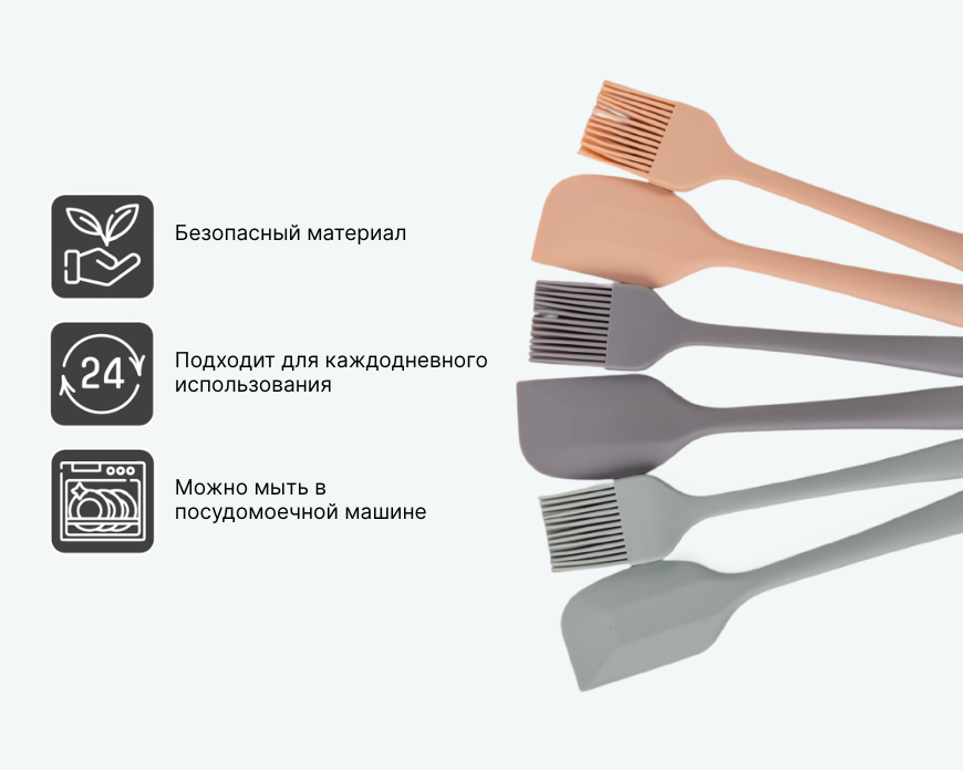 - Силикон не впитывает запахи, не деформируется при перепадах температур и не теряет форму при длительном использовании.